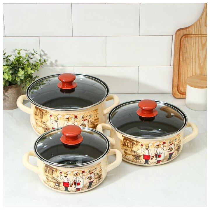 Купить Набор посуды эмалированная сталь, 6 предметов, кастрюли 1.5,2,3 л, МП, Керченский металлургический завод, Сомелье-Экстра