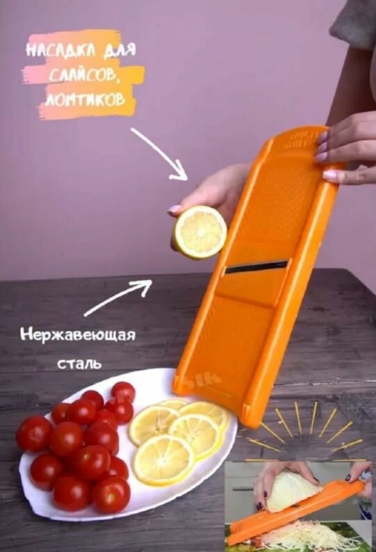 Овощерезка Оранжевая, универсальная. 5 сменных ножей, нержавейка. (Кисловодск, Россия) интересное:
