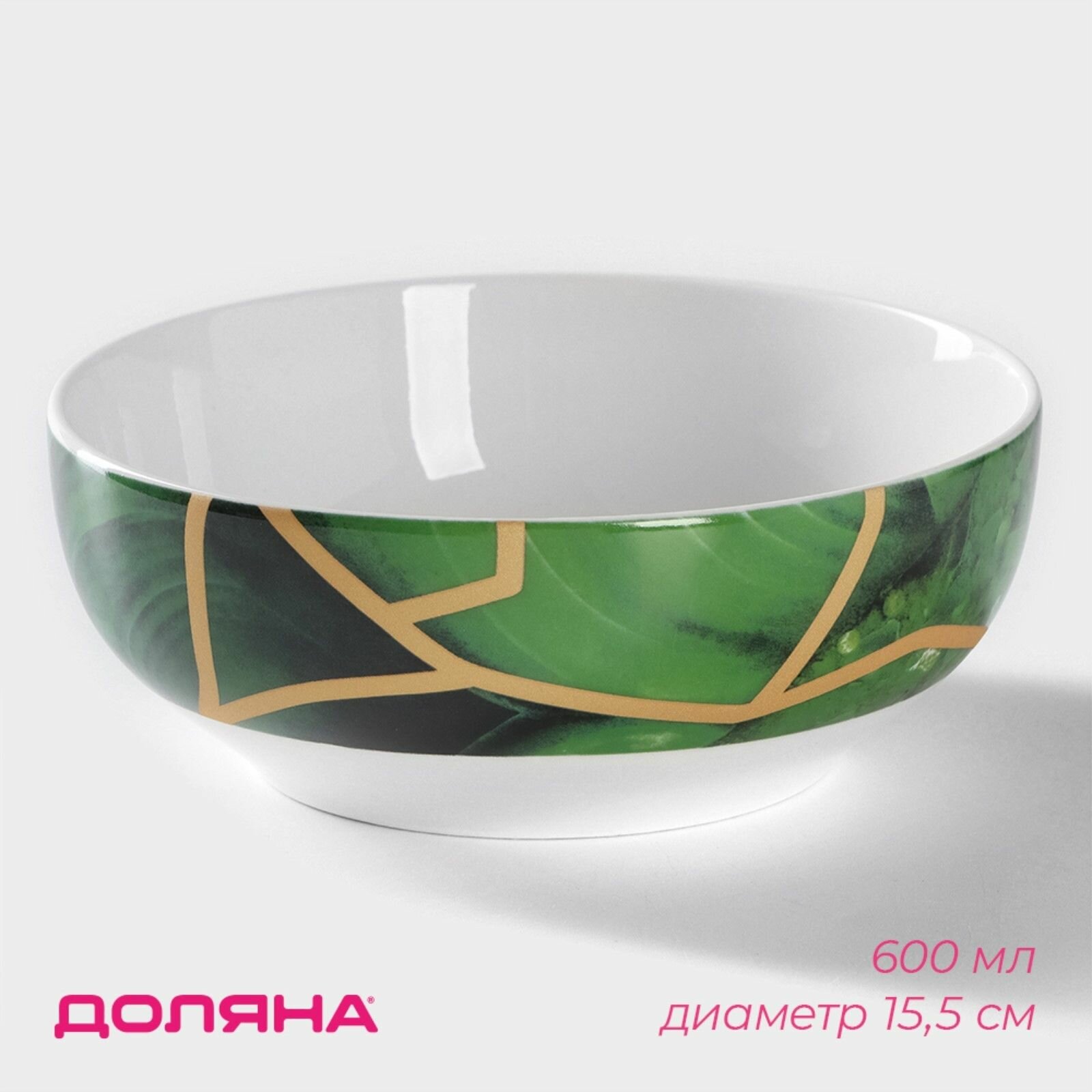 Салатник фарфоровый Доляна «Малахитовая шкатулка», 600 мл, d=15,5 см, цвет зелёный