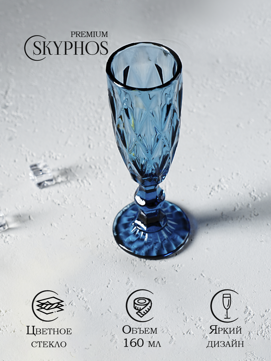 Бокал стеклянный для шампанского Magistro «Круиз», 160 мл, цвет синий интересное: