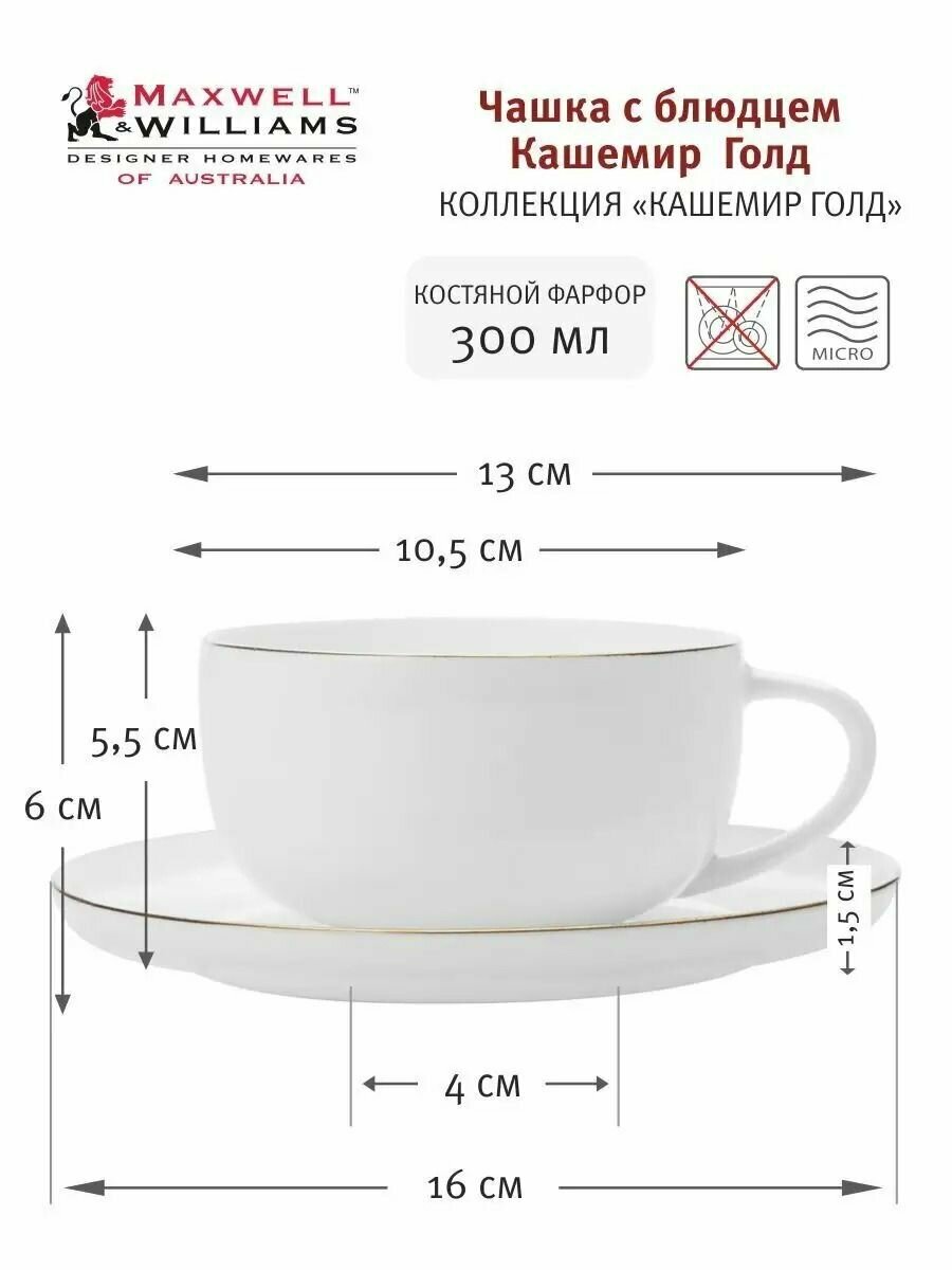 Чайная пара 300 мл "Кашемир Голд" / Maxwell & Williams, фарфор интересное: