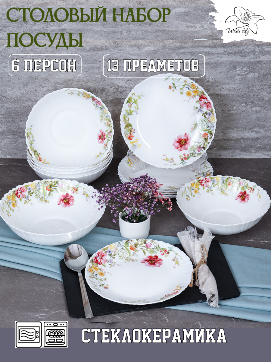 СохранитьСтоловый набор посуды "Весенние цветы" 13 предметов на 6 персон, сервиз столовый интересное: