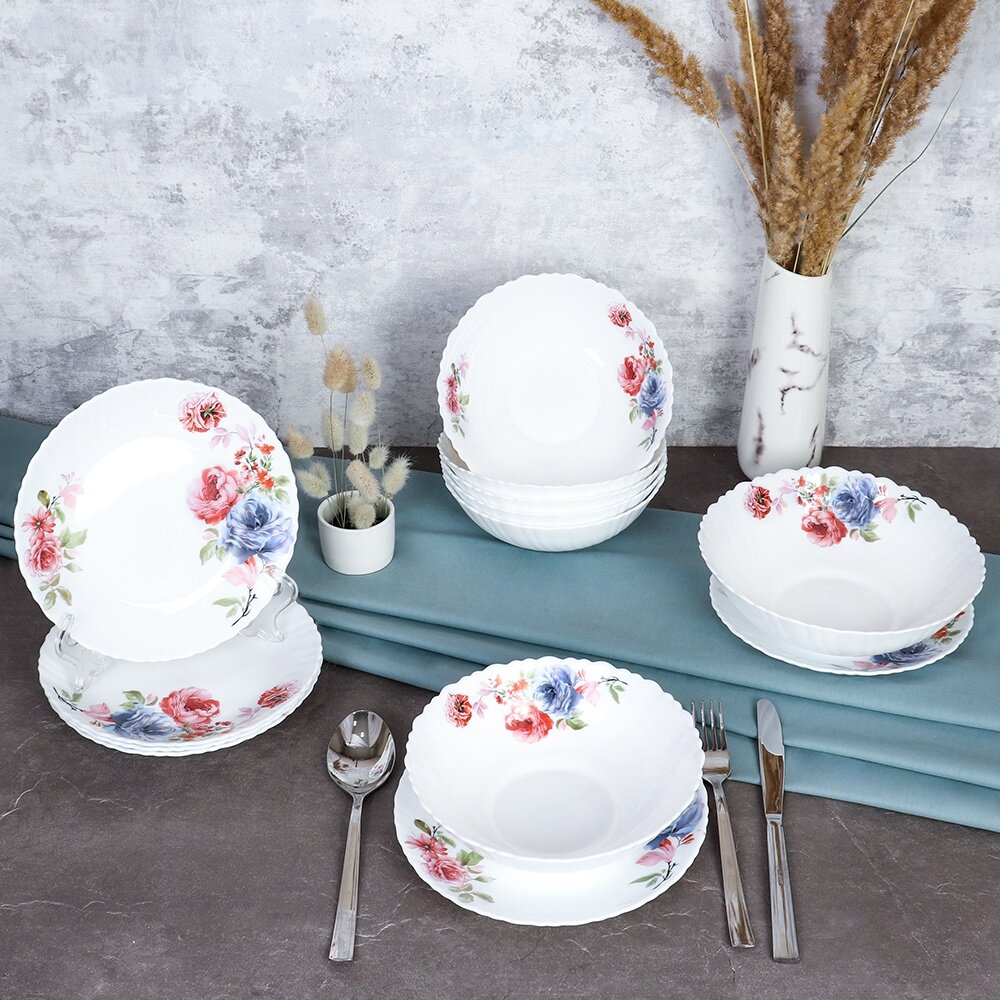 СохранитьСтоловый набор посуды "Синяя роза" на 6 персон, Сервиз обеденный 13 предметов, салатник и тарелки интересное: