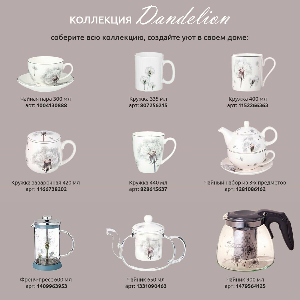 Чайная пара lefard dandelion 300 мл