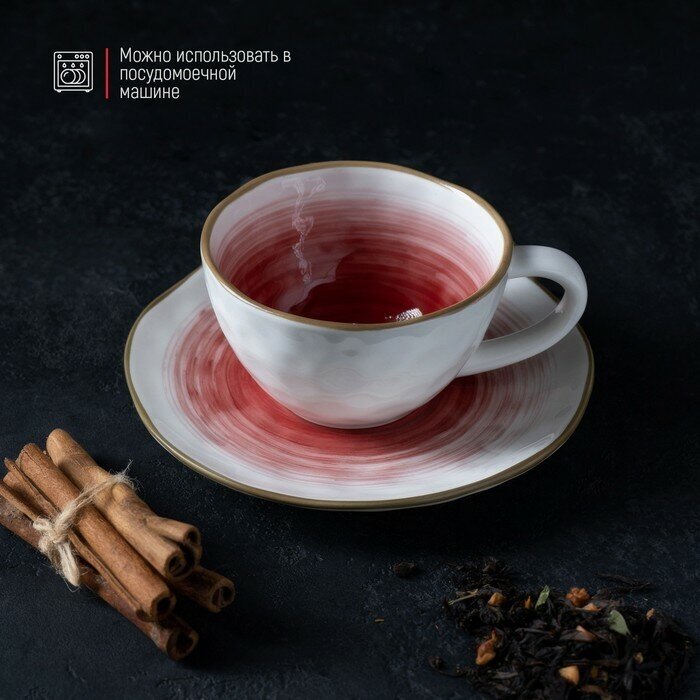Купить Чайная пара Доляна «Космос», чашка 250 мл, блюдце d=16 см, фарфор, белая, красная
