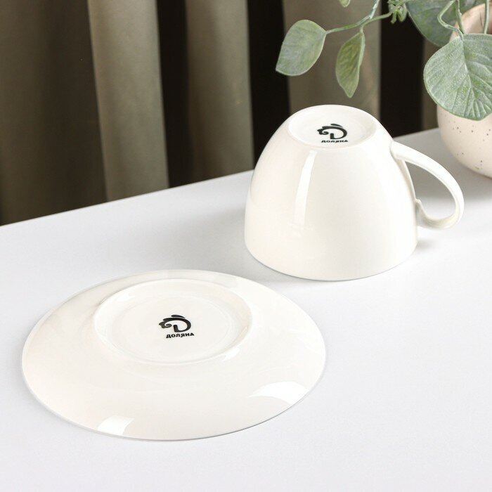 Чайная пара фарфоровая Доляна «Вивьен», 2 предмета: чашка 200 мл, блюдце d=15 см, цвет жёлтый