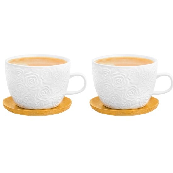 Кофейная пара Elan Gallery "Розы" с деревянной подставкой, 500 мл, на 2 персоны .