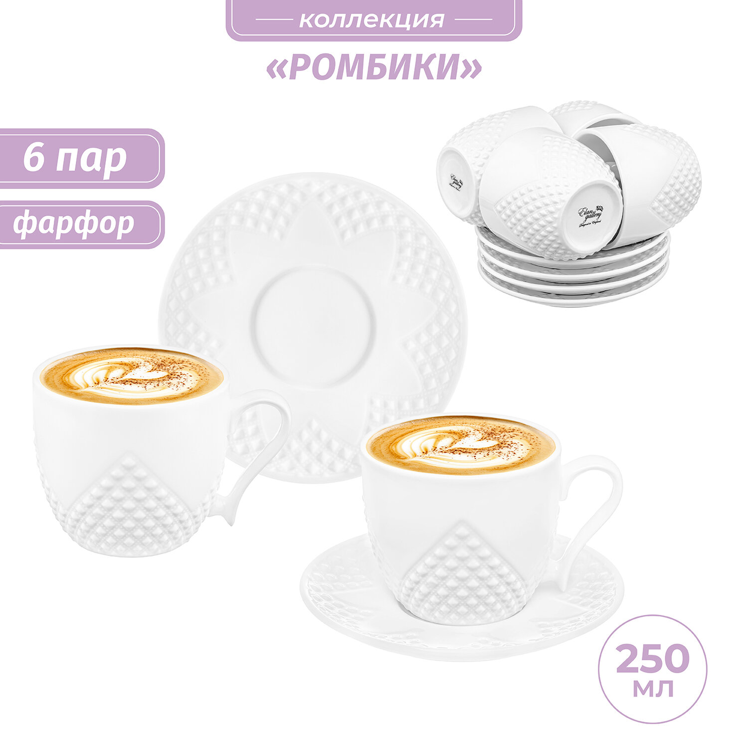 Купить Чайная пара 12 пр. Elan Gallery "Ромбики", 260 мл, фарфор, набор