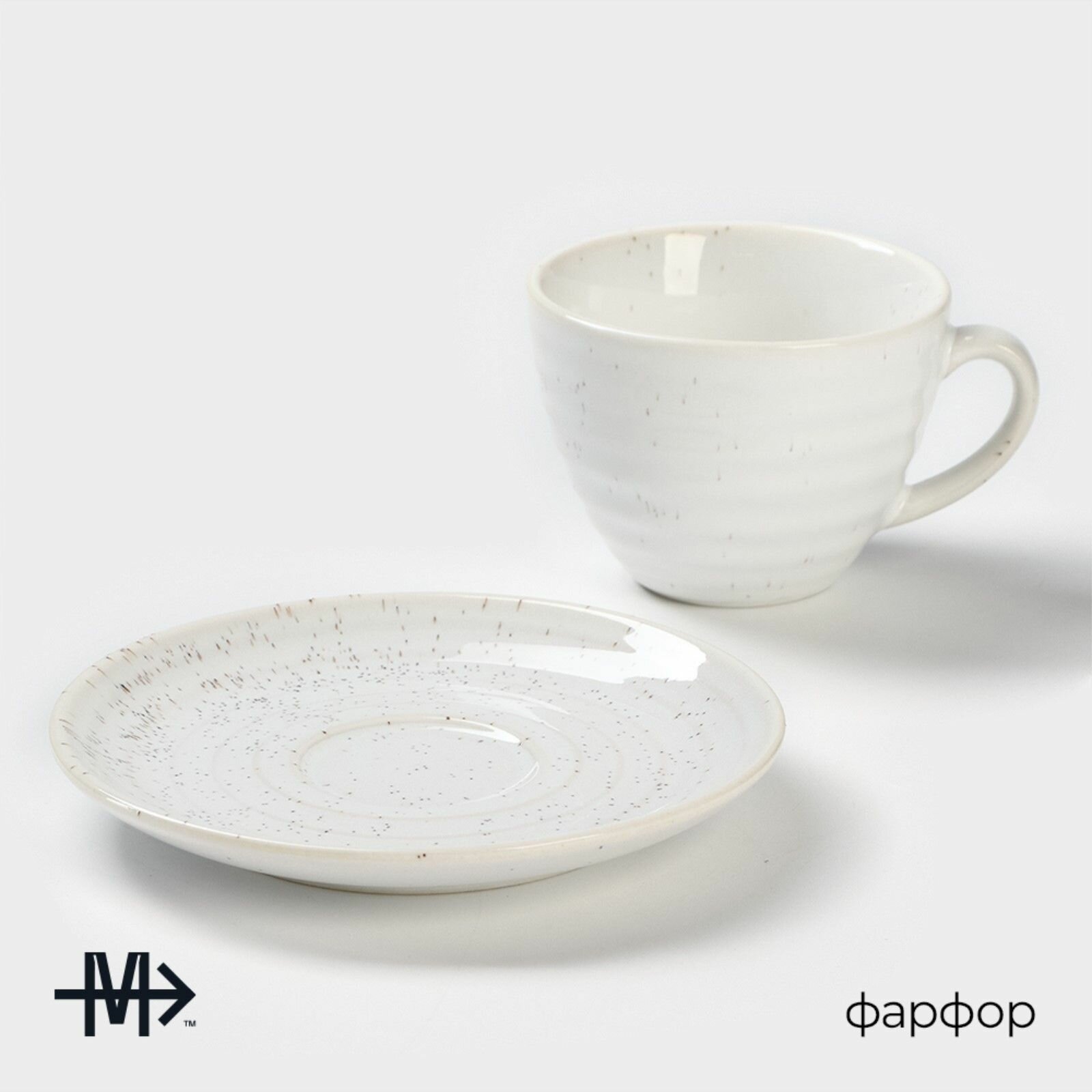 Чайная пара фарфоровая Magistro Mediterana, 2 предмета: чашка 250 мл, блюдце 16×15 см, цвет бежевый