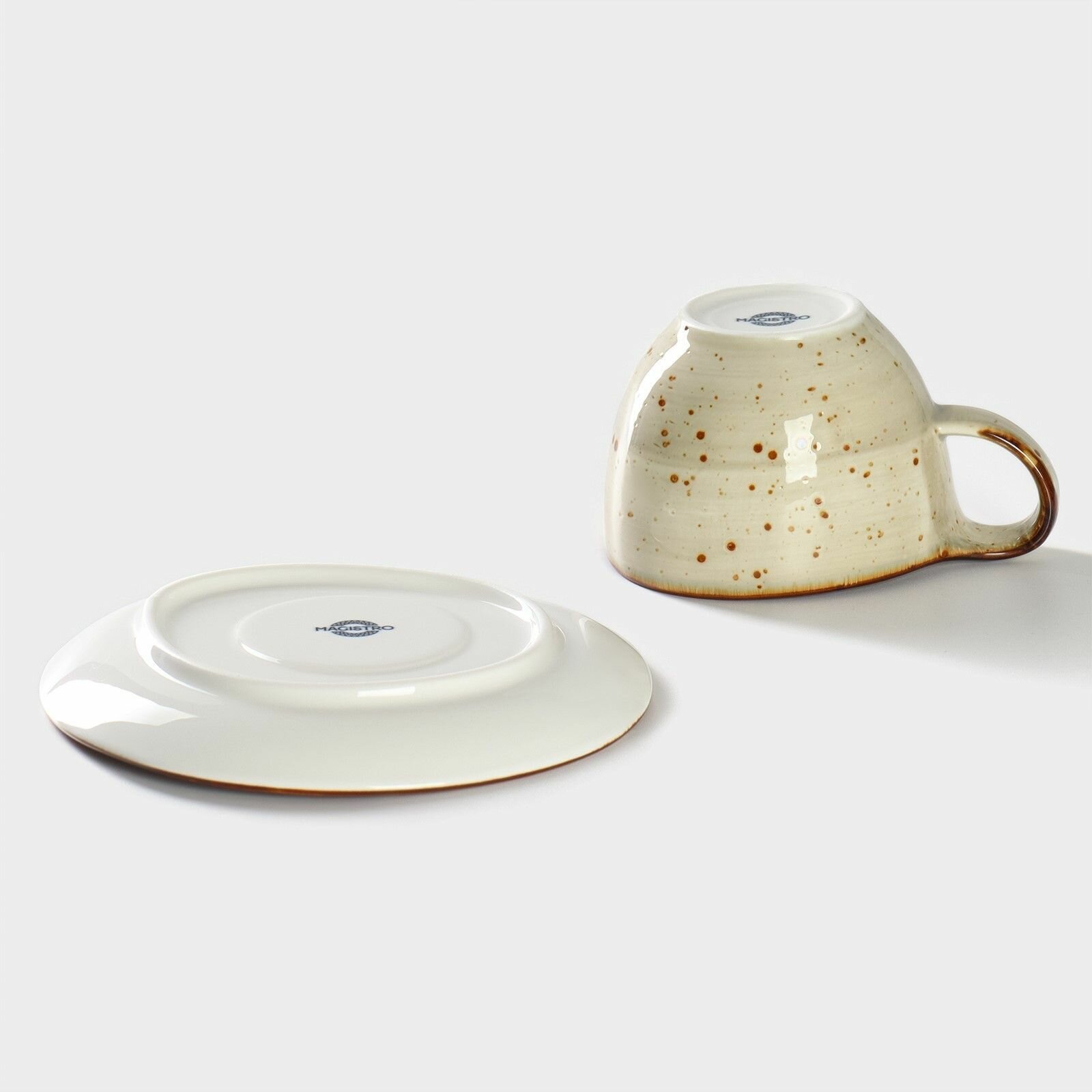 Купить Чайная пара фарфоровая Magistro Mediterana, 2 предмета: чашка 250 мл, блюдце 16×15 см, цвет бежевый