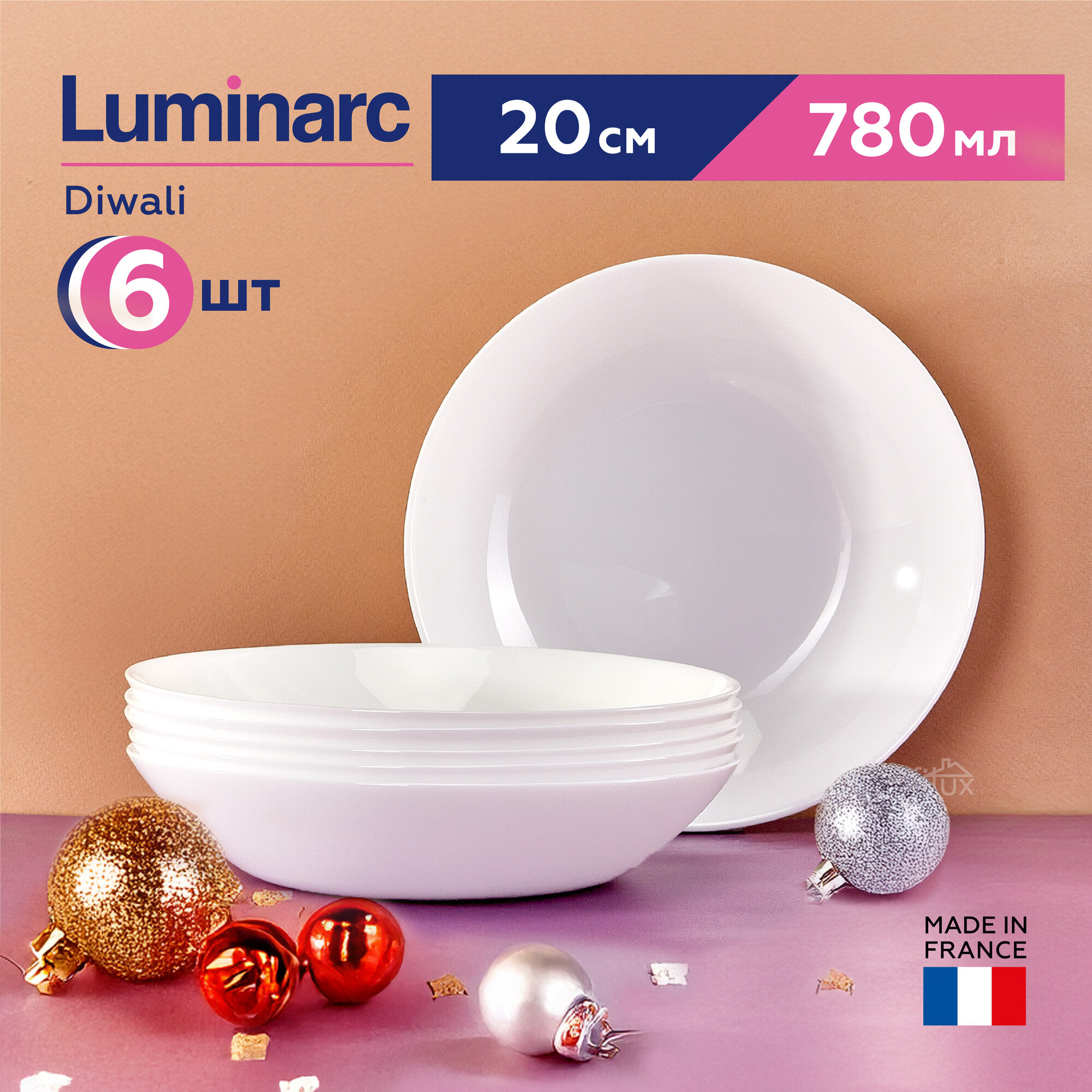 Купить Набор суповых тарелок Luminarc DIWALI, 780 мл, d=20 см, стеклокерамика, 6 шт, цвет белый