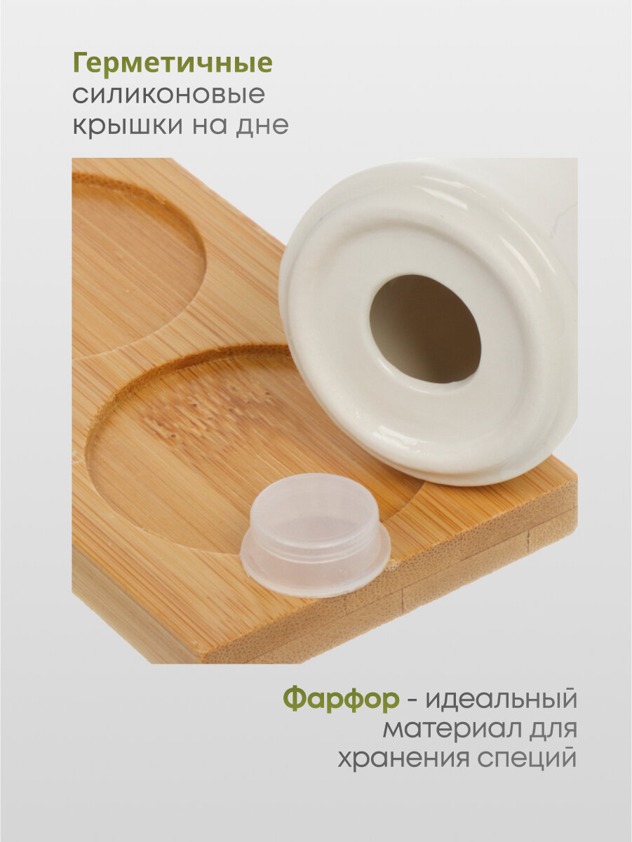 Набор для специй фарфоровый на бамбуковой подставке 10х10 см, Nouvelle