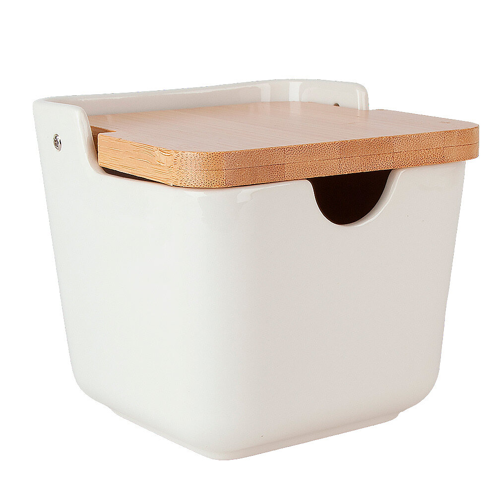Солонка с ложкой "Naturel", фарфоровая с бамбуковой крышкой, 280 мл, Nouvelle