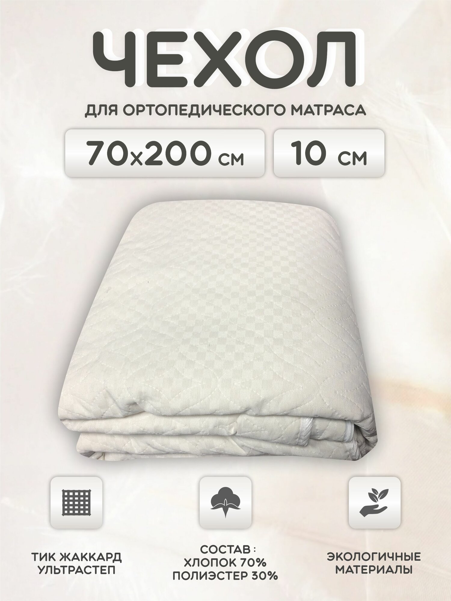 Чехол-наматрасник на беспружинный матрас Гарантия Уюта защитный, тик, на молнии, высота 8 см, 70х200 см