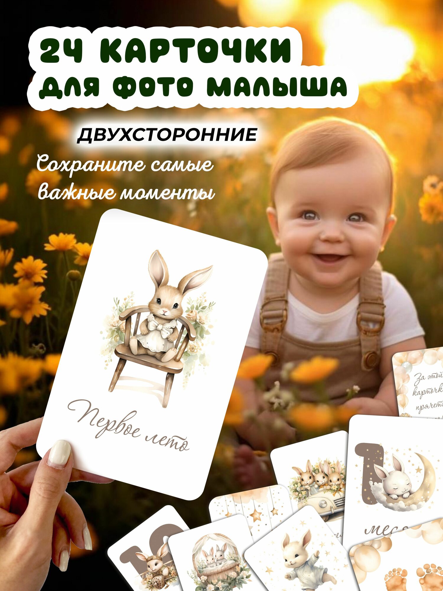 Купить Мистер слон Набор карточек для фотосессии новорожденного малыша "Зайки", 24 шт, универсальные, идеи для фотоальбома ребенка