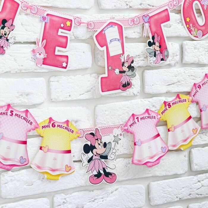 Купить Гирлянда на ленте Disney с 12 карточками для фото "Мне 1 год", Минни Маус (1766266)