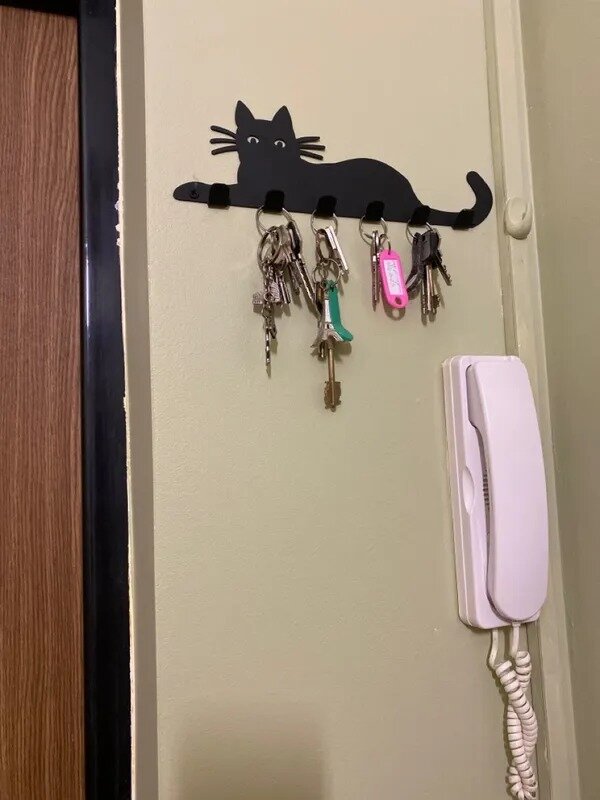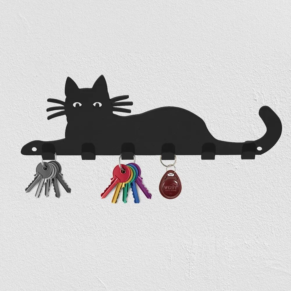Ключница настенная Кошка черная матовая интересное: