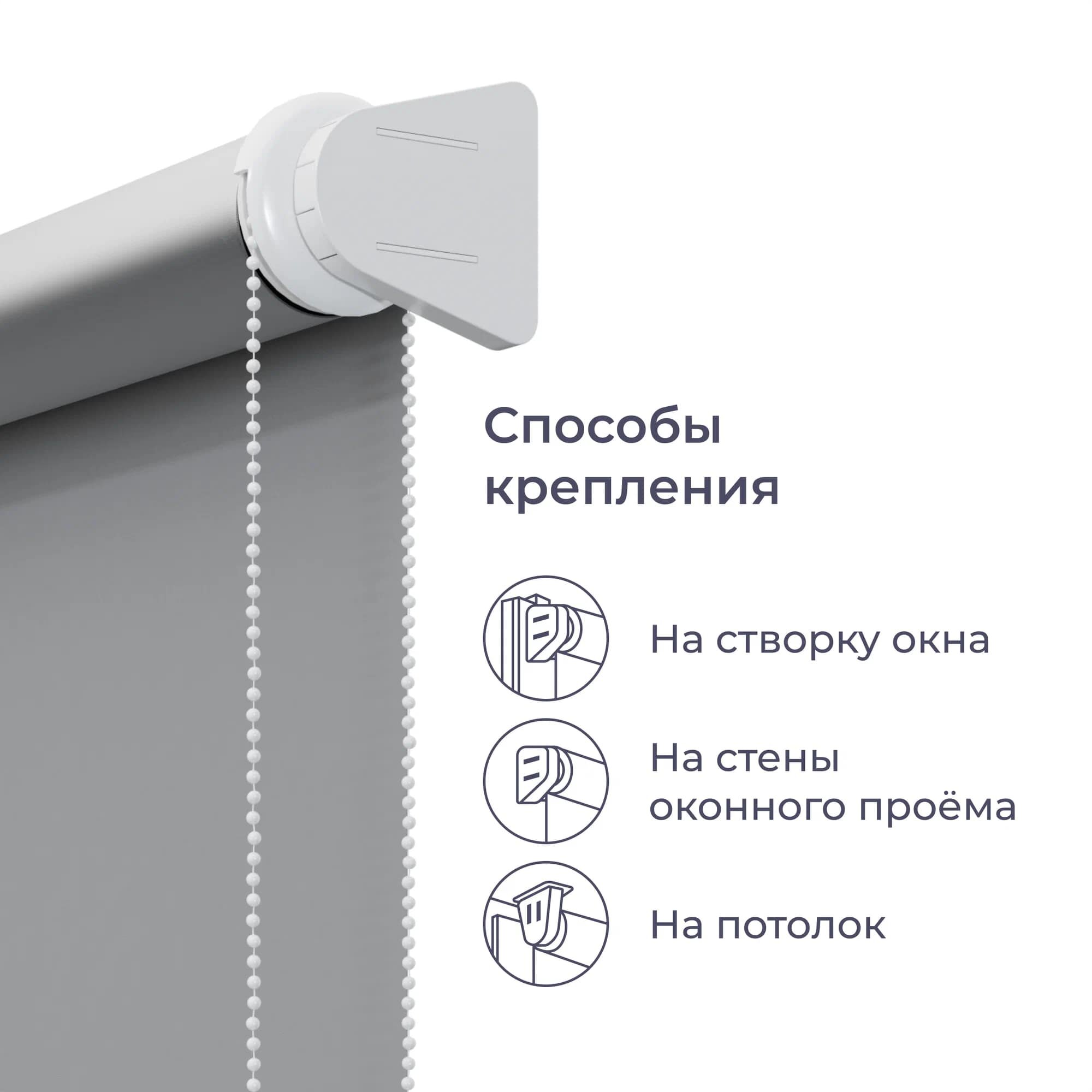 | Комплектация | держатель, базовое крепление для рамы, втулка, фиксатор, цепочный механизм, стопоры цепи, рулон ткани, утяжелитель |