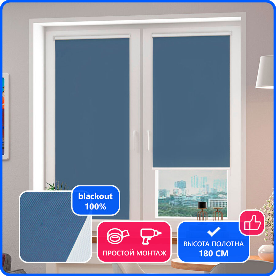 Рулонная штора на окна FixLine Amigo BASIC Black-Out 75х180, синий