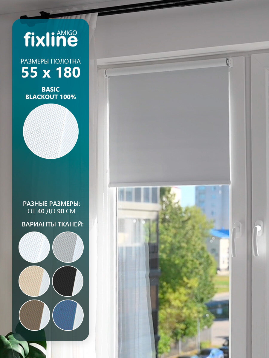Купить Рулонная штора на окна FixLine BASIC Black-Out 55х180 см, белый