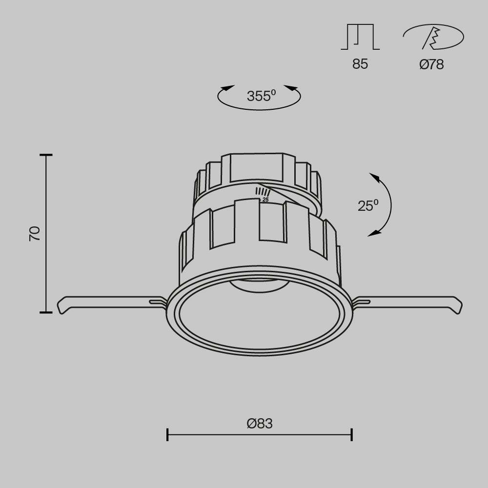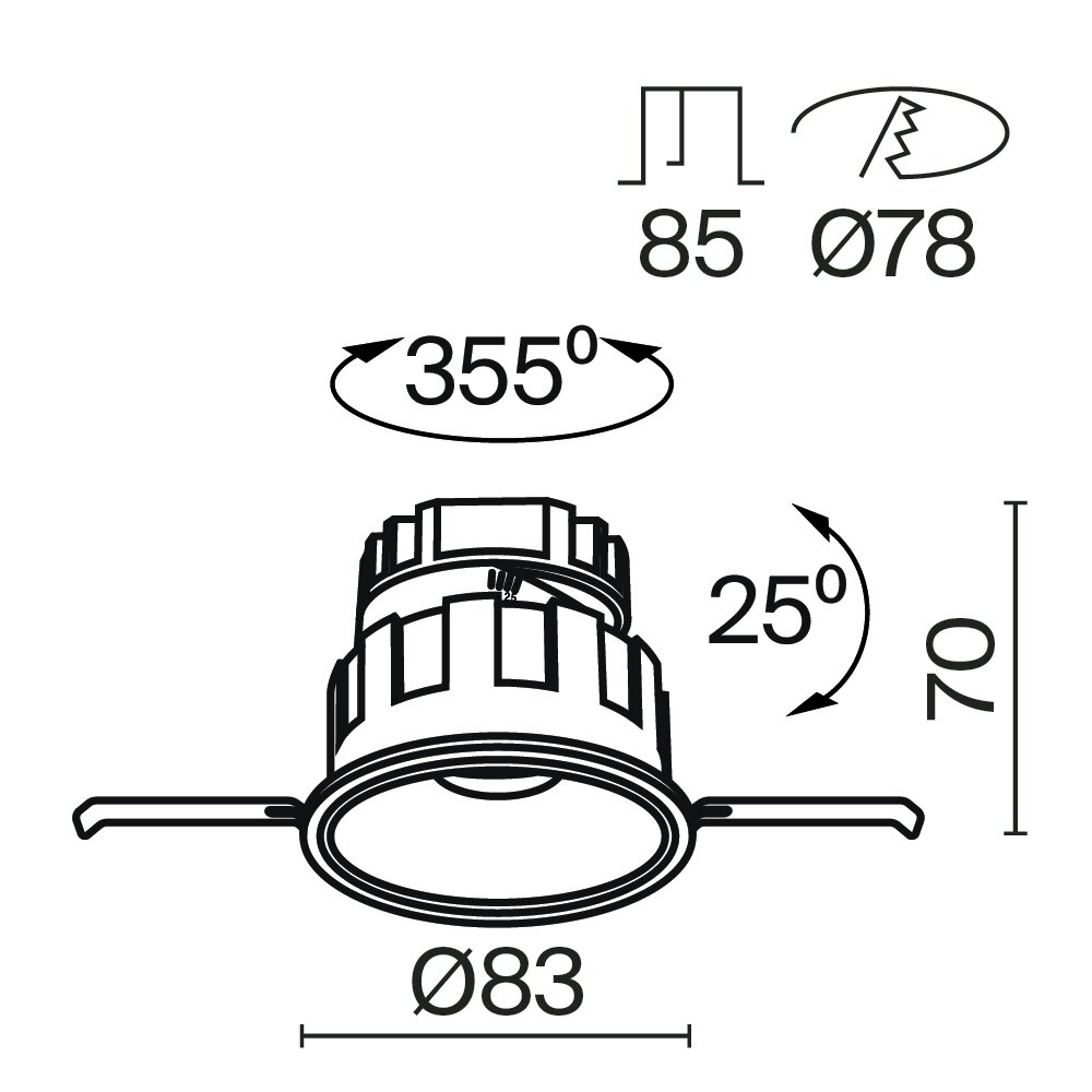 | Ширина/диаметр врезного отверстия | 83 мм |