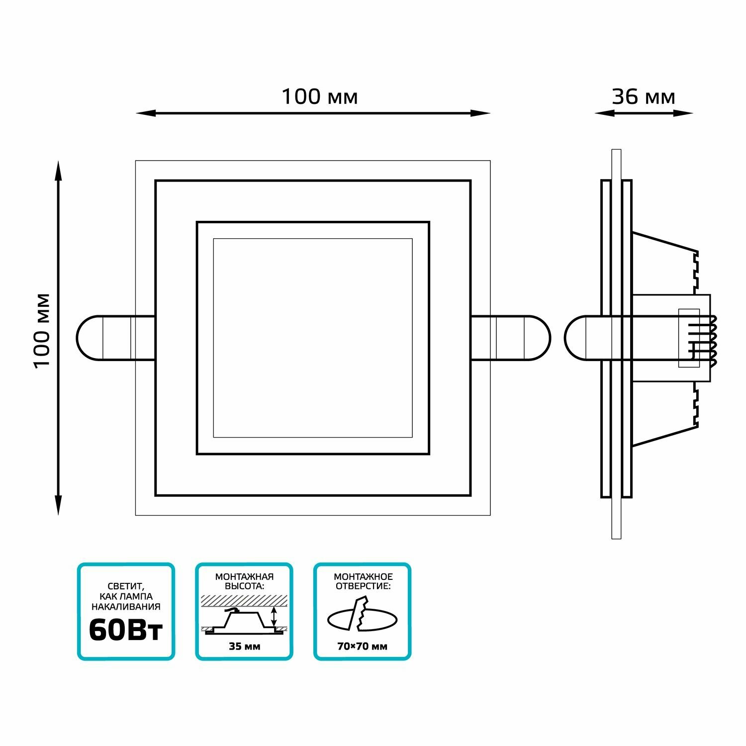 СохранитьСветильник потолочный встраиваемый 6W нейтральный белый свет 4000K 100*100*36мм 220V IP20 с декор стеклом Gauss Glass интересное: