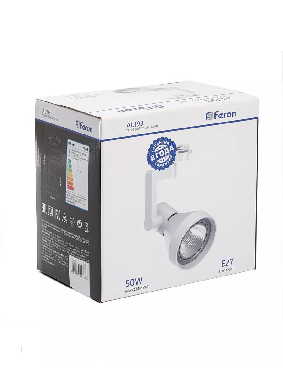 Трековый светильник FERON AL193, однофазный на шинопровод, под лампу E27, поворотный, белый