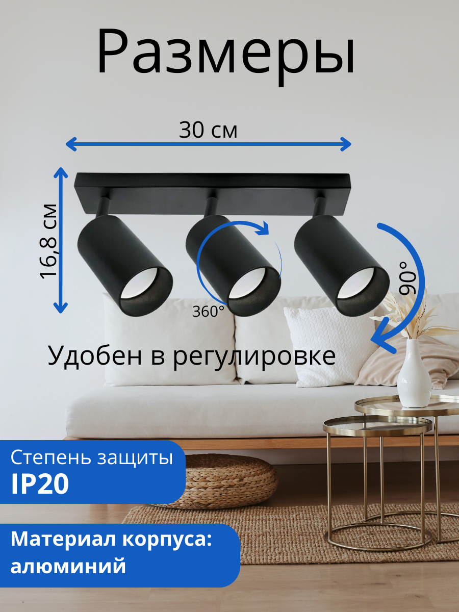 Светильник потолочный настенный, тройной, спот Feron ML203-1 под лампу GU10, 3х50Вт, MR16, черный