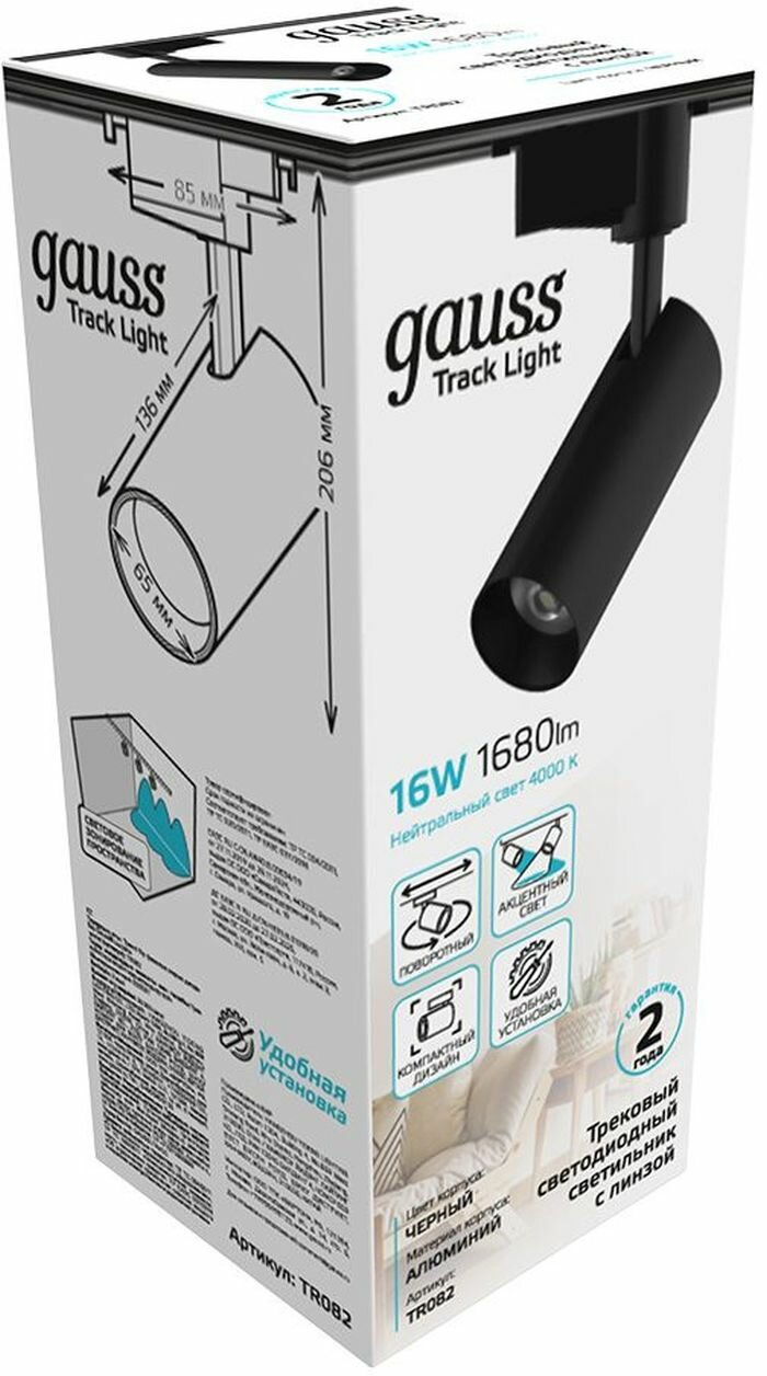 СохранитьТрековый светильник Gauss цилиндр 16W 1680lm 4000K 180-220V IP20 65*206мм черный линза 36 LED 1/40 интересное: