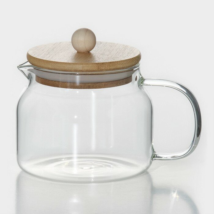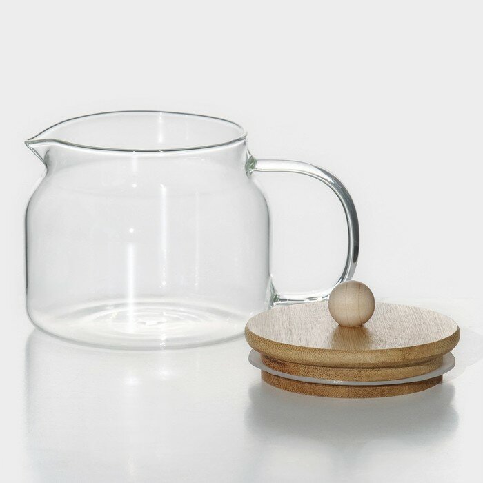 Чайник заварочный стеклянный с бамбуковой крышкой "Эко", 400 мл, 13.5x10x10.5 см
