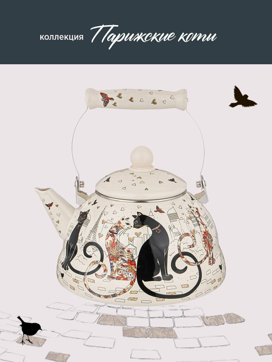 Чайник Agness "Парижские коты", эмалированный, 3л, в коробке