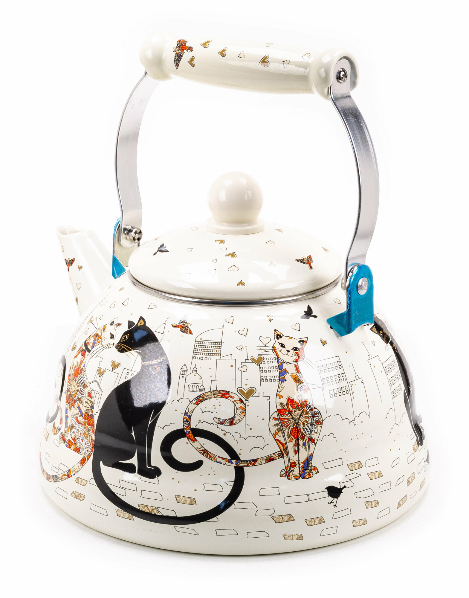 Чайник Agness эмалированный со свистком, серия "парижские коты" 2,2 л, индукционное дно