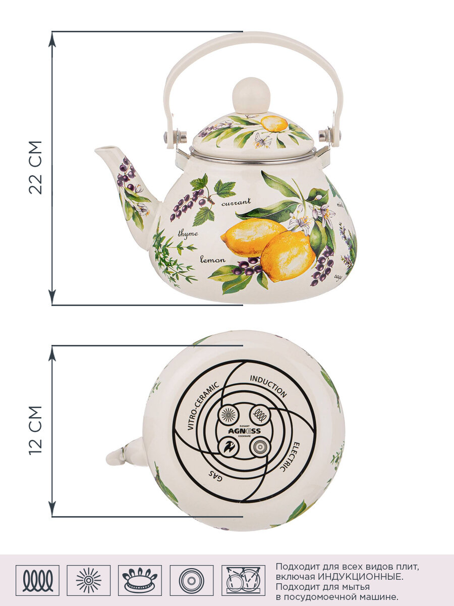 Чайник Agness эмалированный серия "фруктовая корзина", 2,5 л. (934-566)