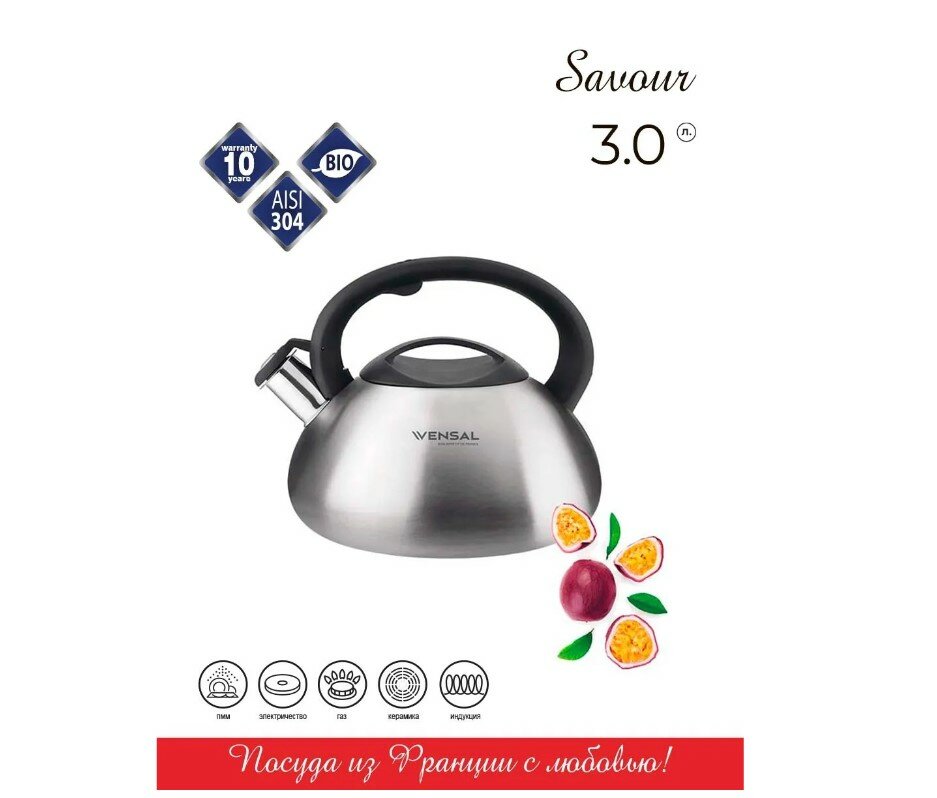 Чайник Vensal Savour 3,0 л с ручкой из термостойкого пластика, система открывания на ручке арт. VS3007 интересное: