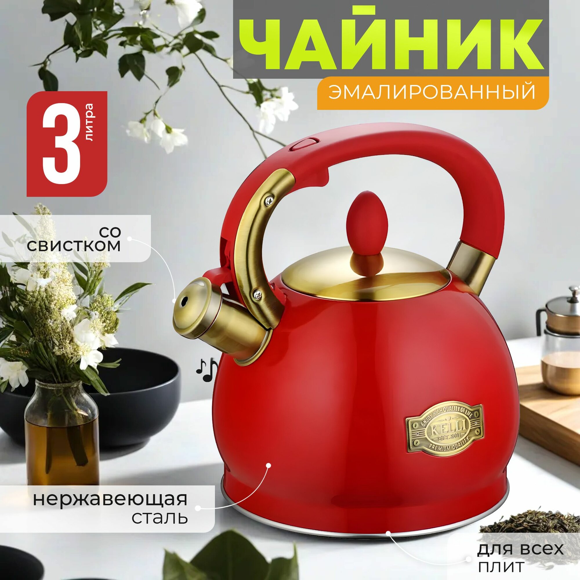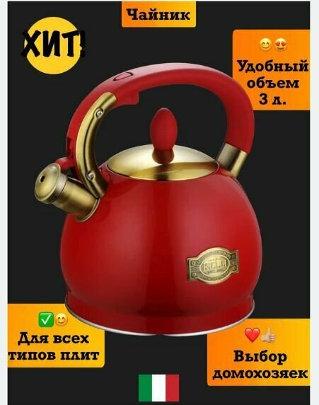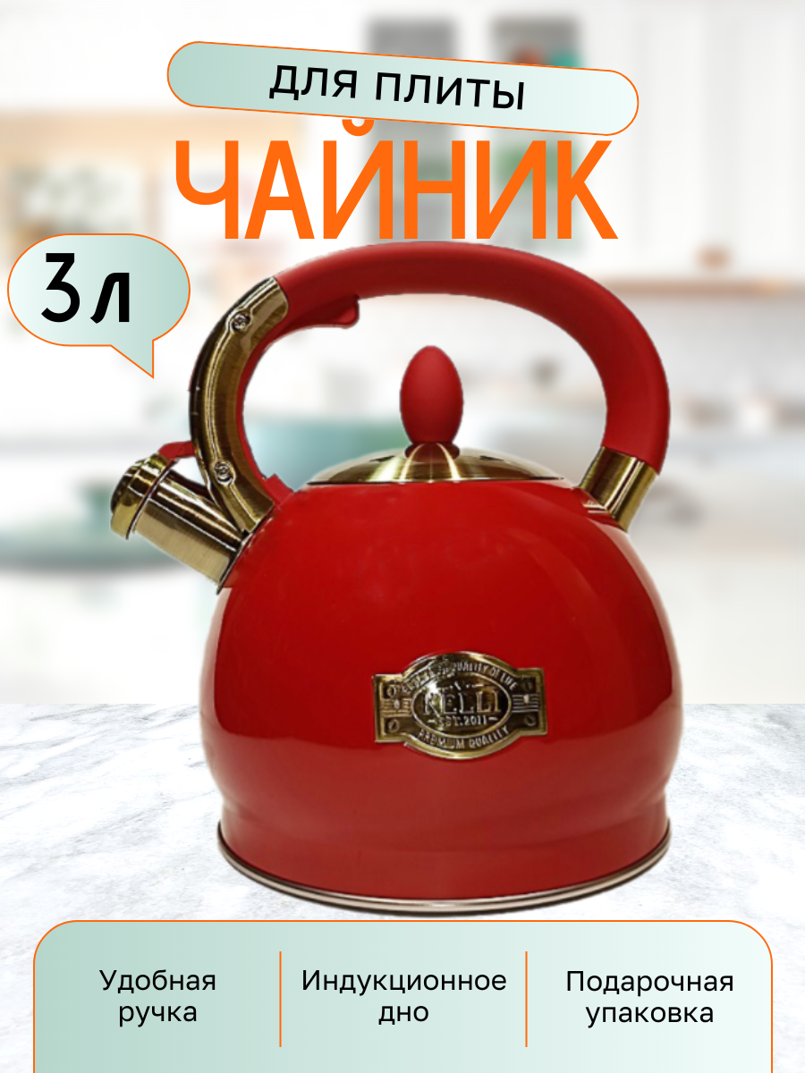 Чайник Kelli KL-4556 обьем 3,0л теплоемкое капсульное цвет красный интересное: