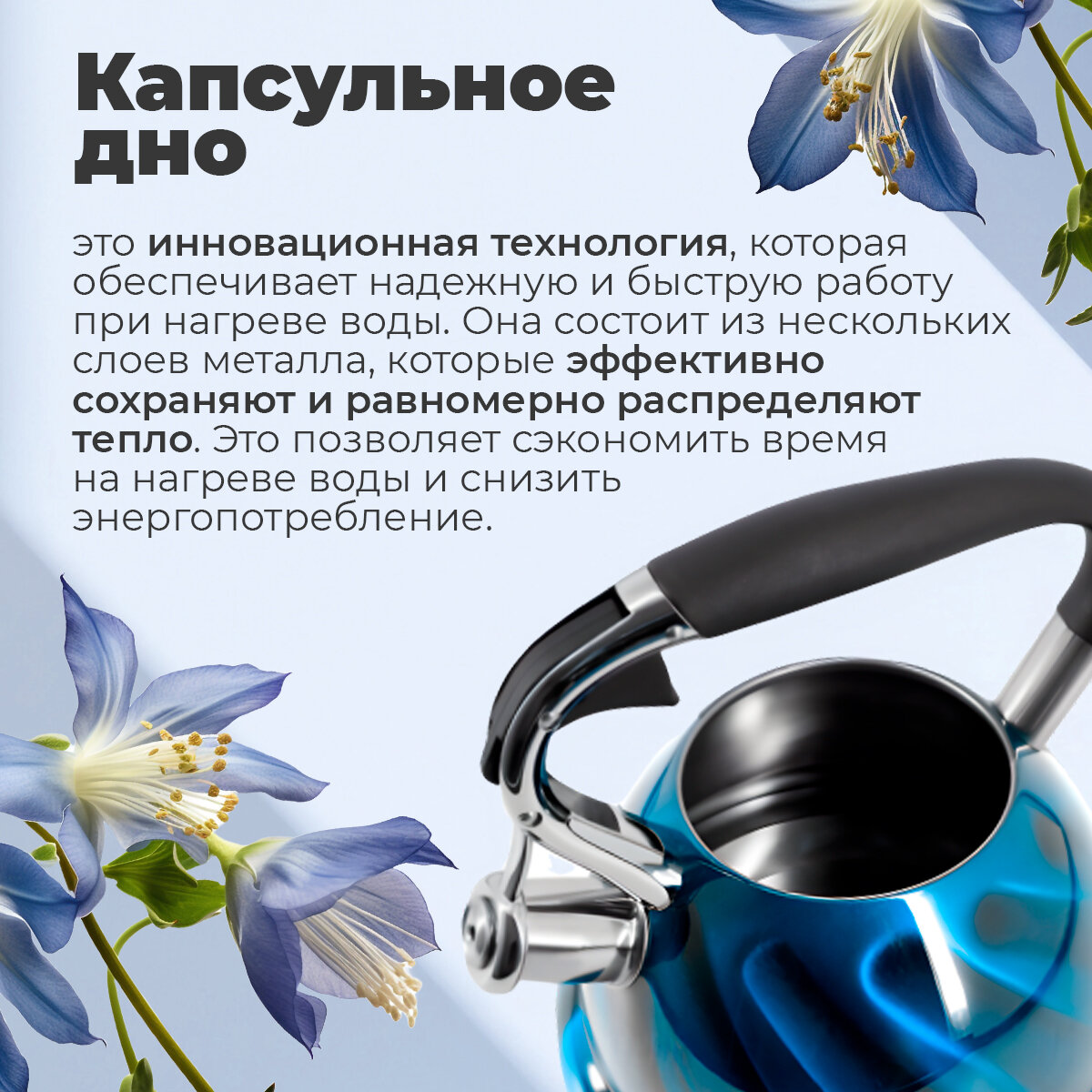 Чайник для плиты со свистком Pomi d’Oro, 2,8 литра с капсульным дном