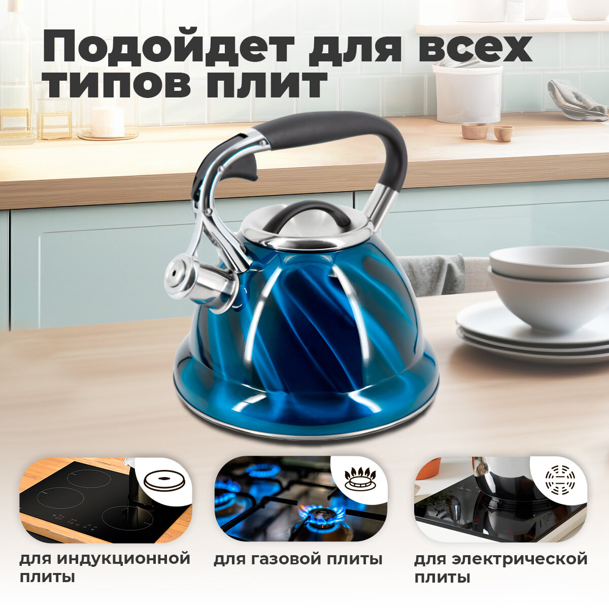 Чайник для плиты Pomi d’Oro Napoli, 3 литра, индукционное дно, со свистком