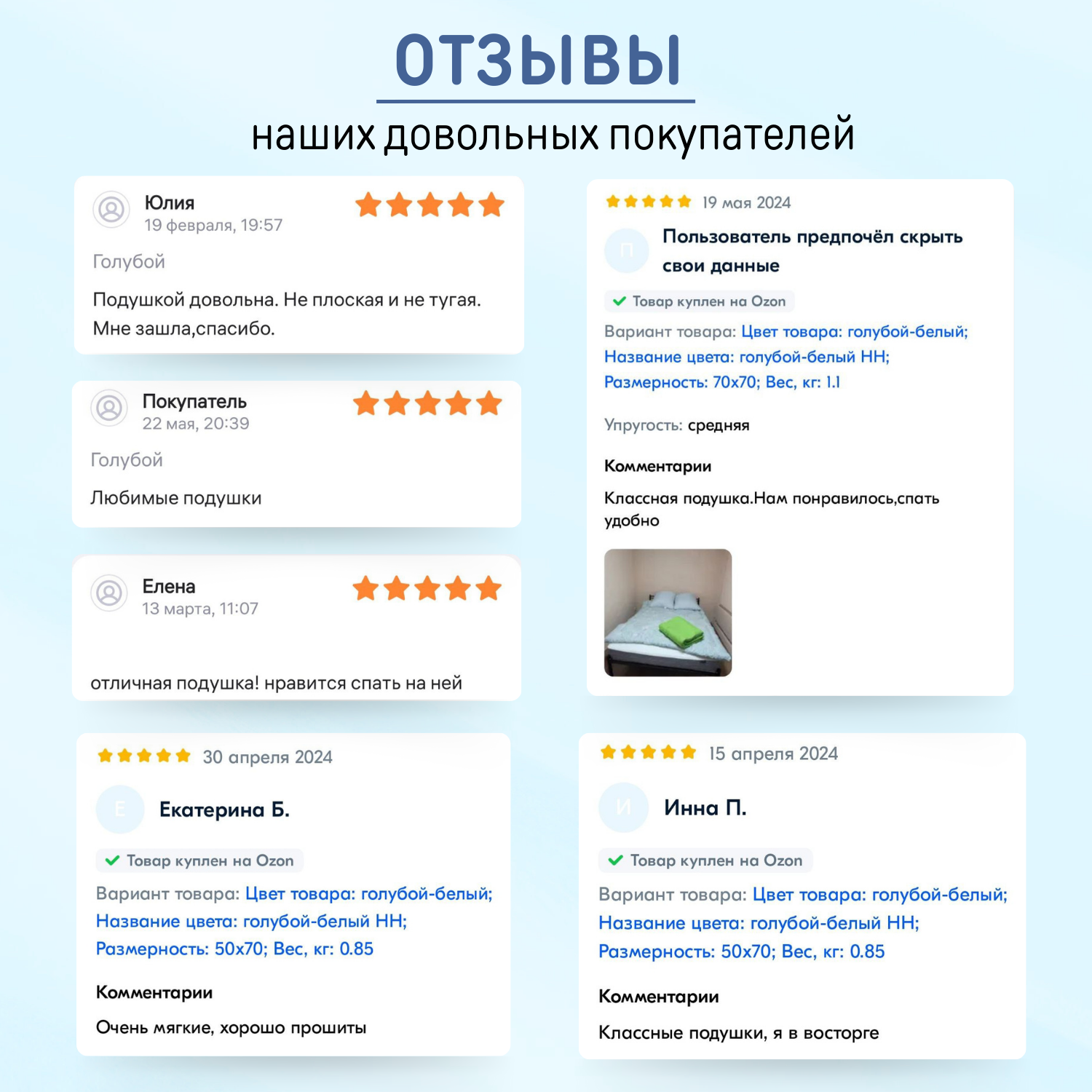 Подушка 70х70 см Мягкий сон голубая гипоаллергенная с бортиком для сна и отдыха взрослым и детям / для сна на спине, на животе,на боку/ для дачи / под голову / для кровати , для дивана / для беременных / для путешествий / для шеи /в подарок