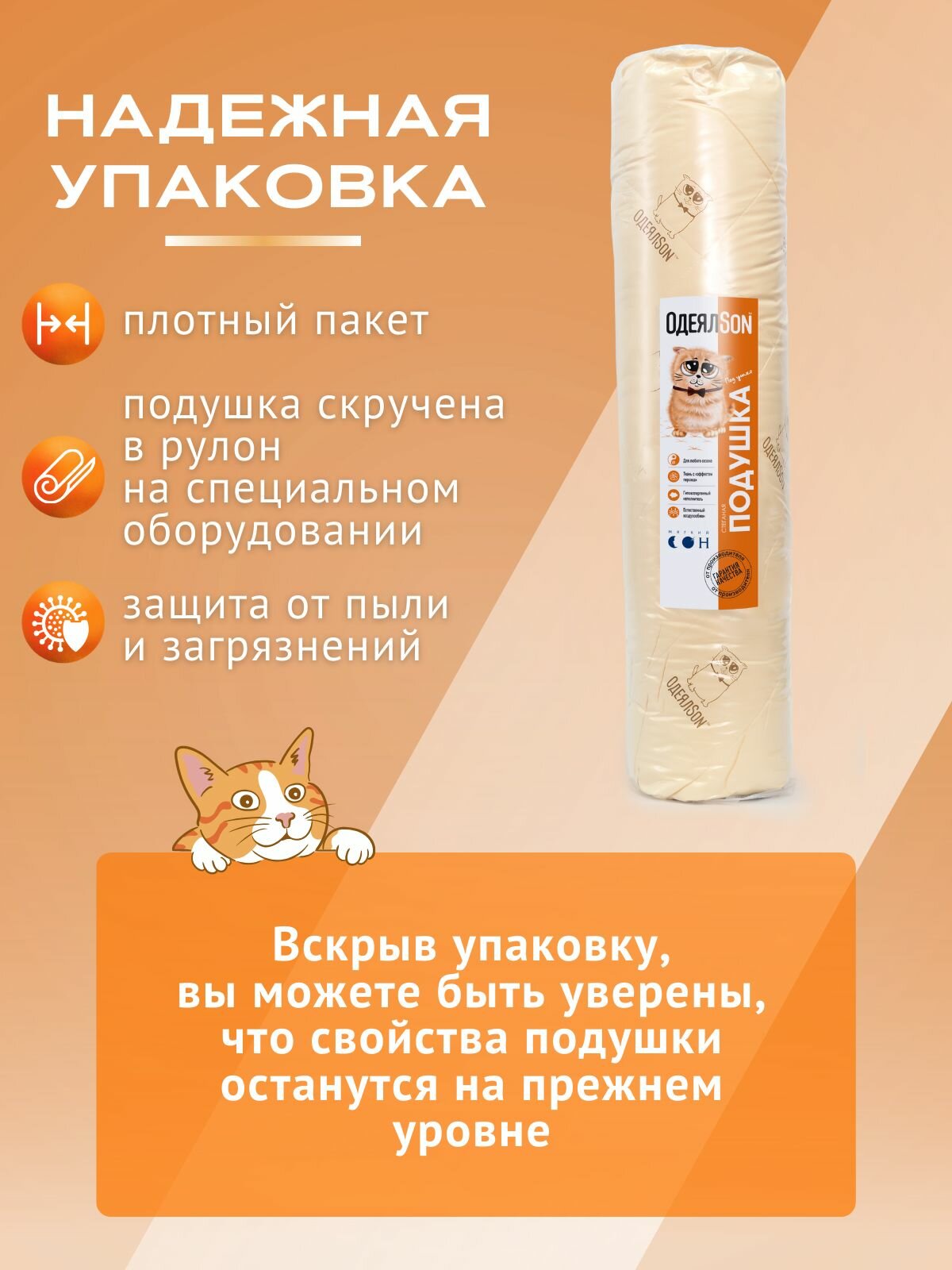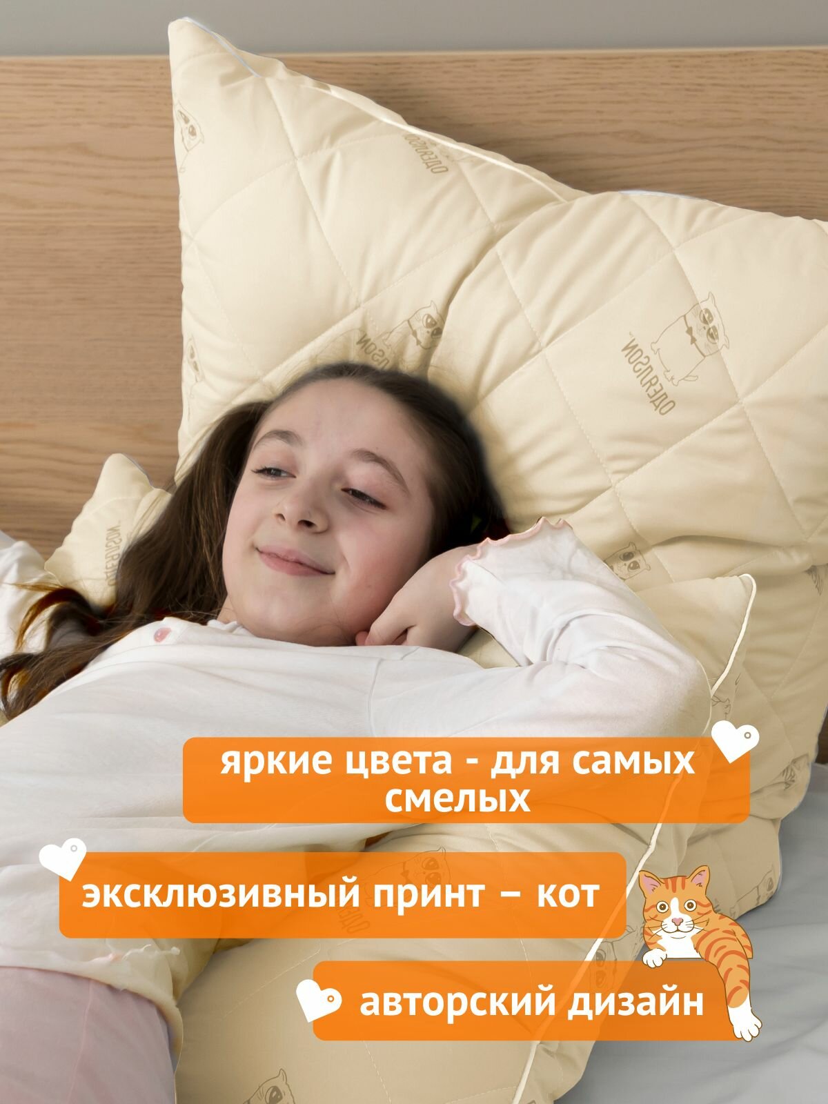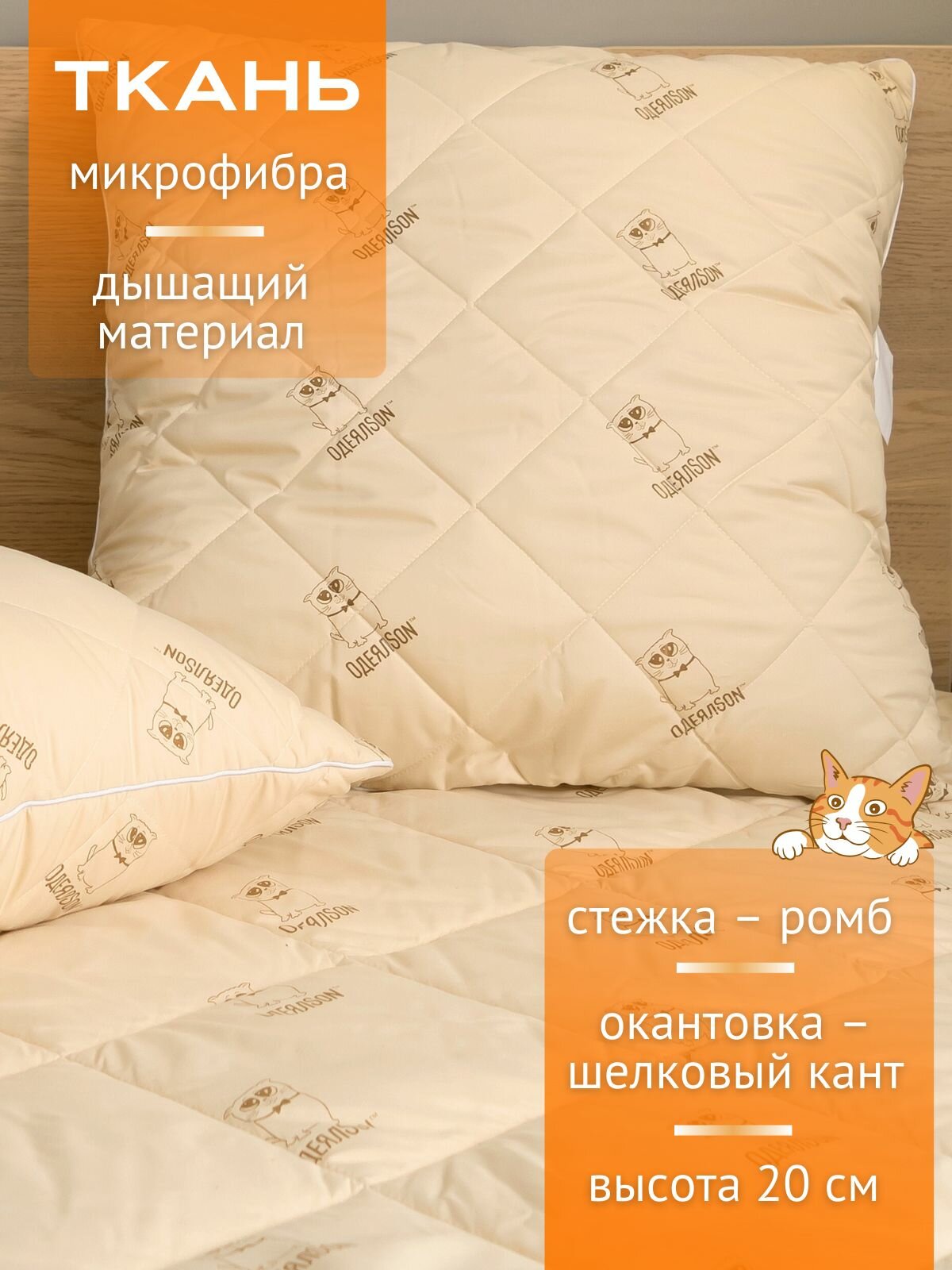 Подушка Мягкий сон 70х70 см упругая бежевая Кот коллекции ОдеялSon гипоаллергенная интересное: