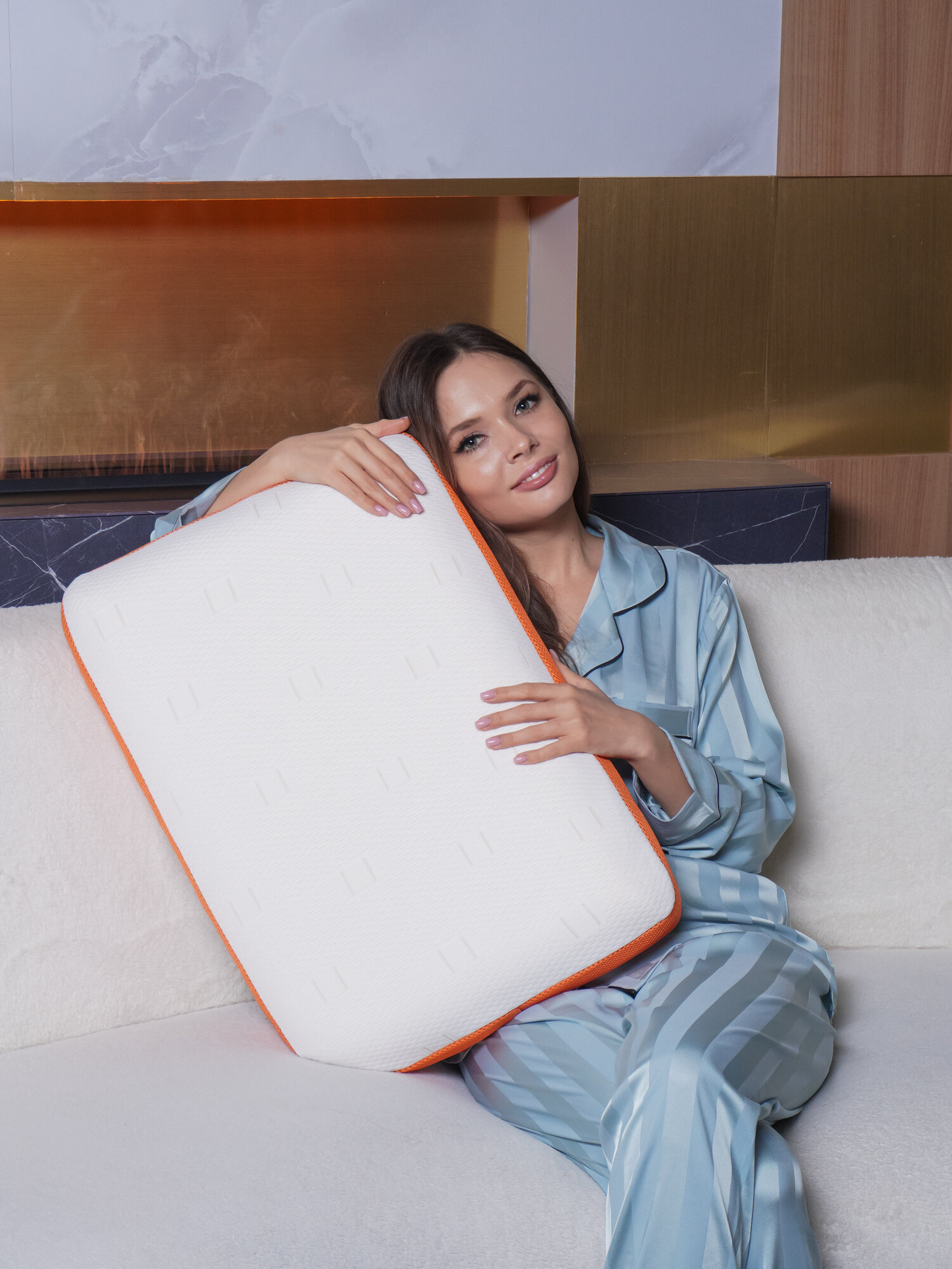 Подушка анатомическая ортопедическая для сна с эффектом памяти, классической формы, средней жесткости, 60х40х12 см, оранжевая интересное: