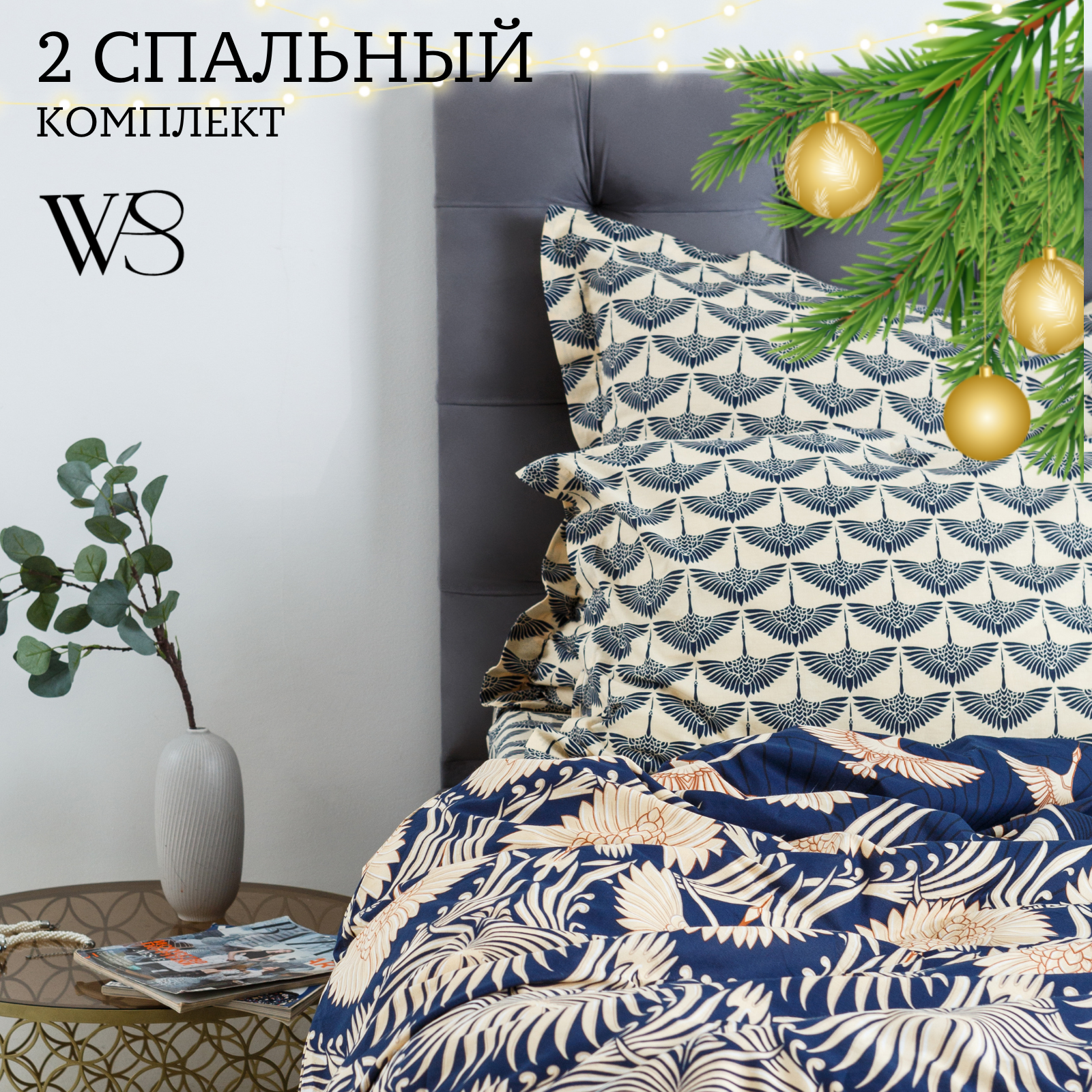 Постельное белье 2 спальное, наволочки 50х70, WINDSLOW Селеста, пододеяльник на молнии, ткань перкаль, 100% хлопок