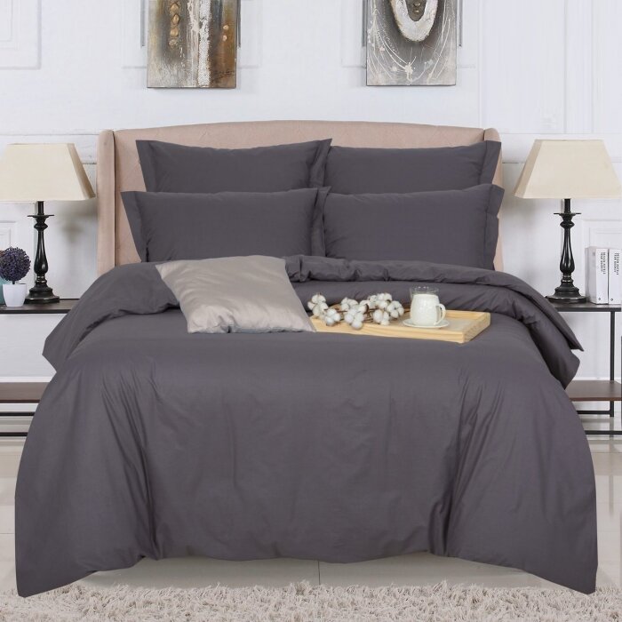 Пододеяльник евро 200х200 см поплин однотонный Графит