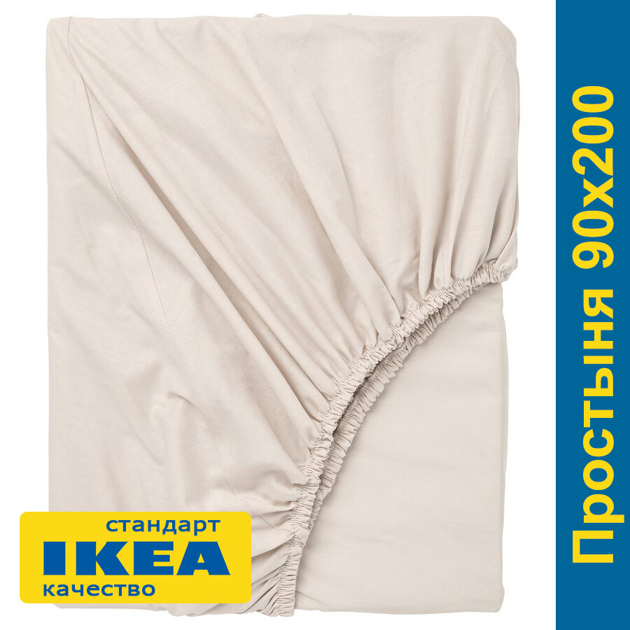 Простыня на резинке 140x200 двалия (икеа DVALA), светло-бежевый, миткаль