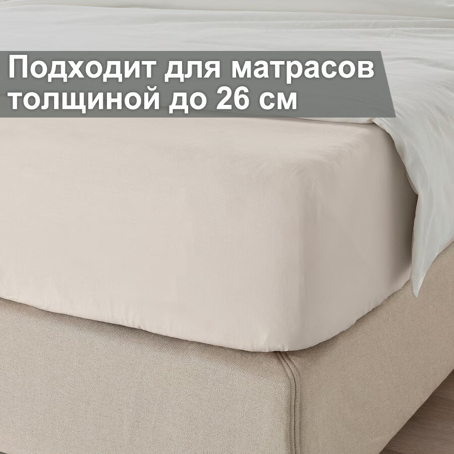 Простыня на резинке 140x200 двалия (икеа DVALA), светло-бежевый, миткаль