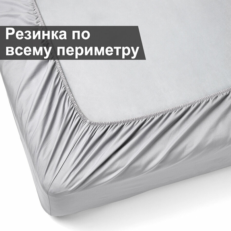 Простыня на резинке 180х200 ульвидоро (икеа ULLVIDE) серый поплин KL-50342727