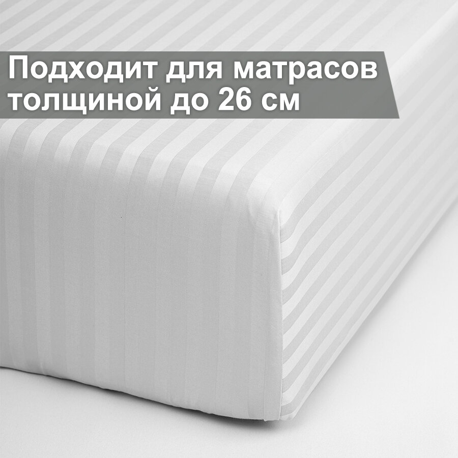 Простыня на резинке 140x200 натесмио (икеа NATTJASMIN) белый страйп сатин, лиоцелл KL-60351251