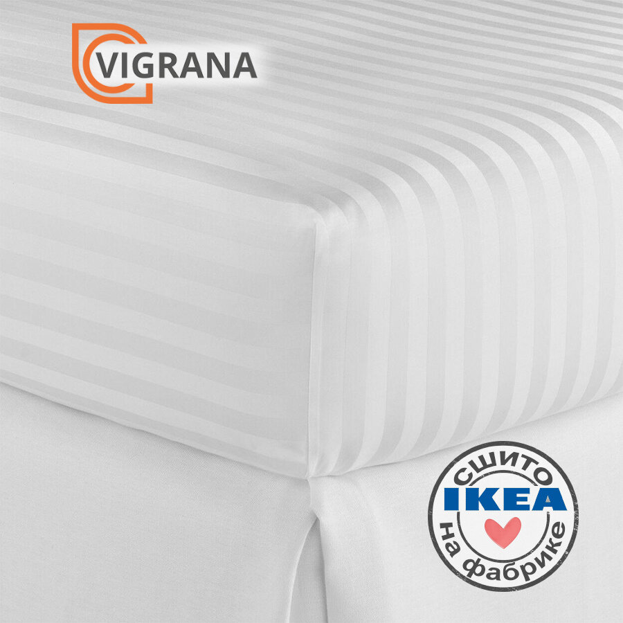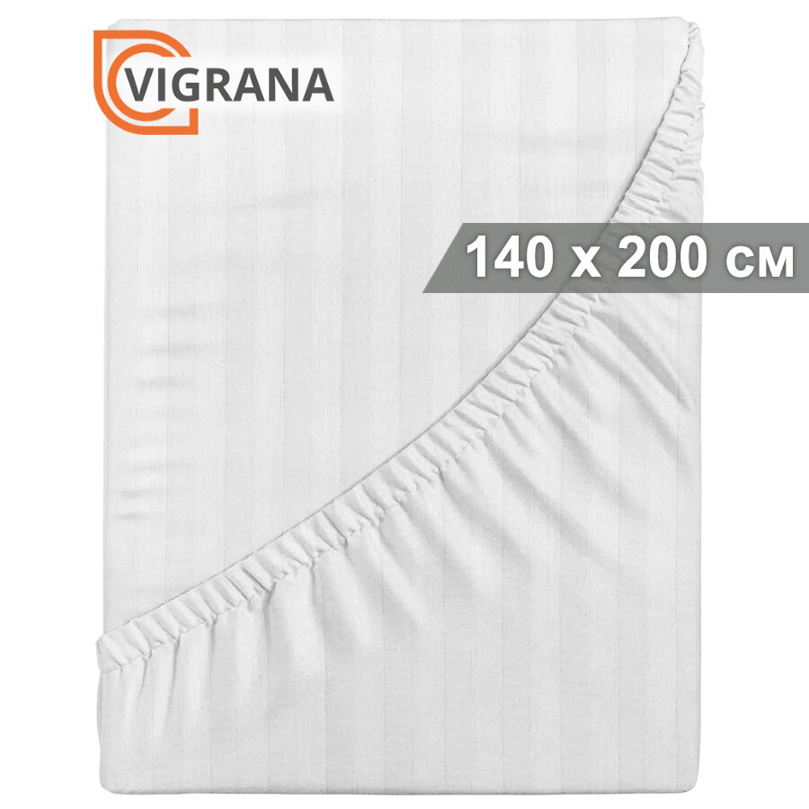 Купить Простыня на резинке VIGRANA натесмио 140х200 белого цвета страйп, сатин, лиоцелл