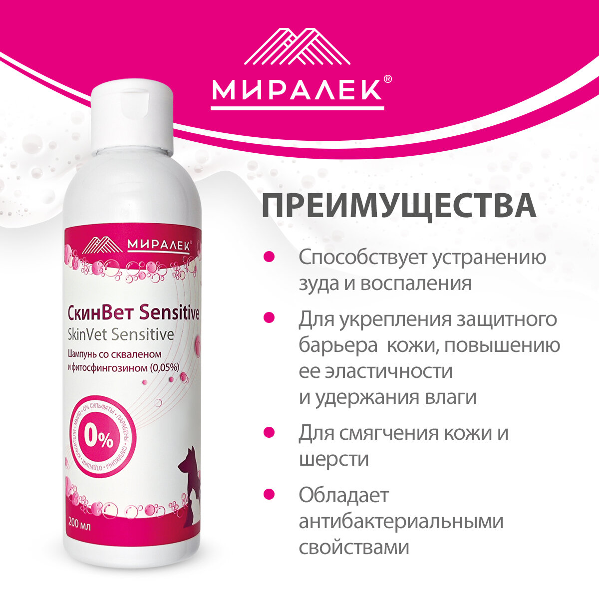 Купить Шампунь СкинВет Sensitive для собак и кошек (со скваленом и фитосфингозином) 200 мл