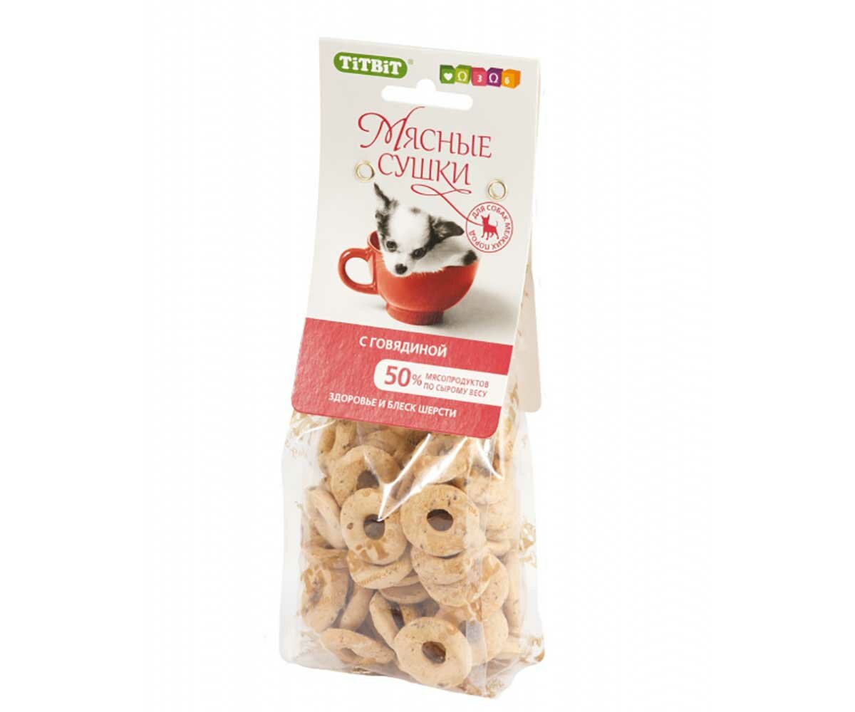 Купить Лакомство для собак TitBit мясные сушки с говядиной 100г 004982
