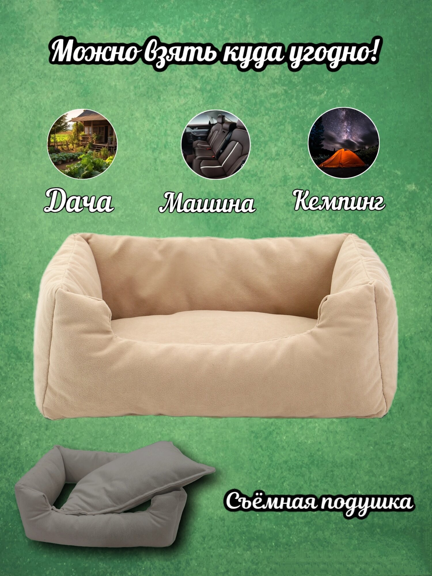 Лежанка, для кошек и собак, маленьких и средних пород, прямоугольная, кремовый, 70х50х23 см